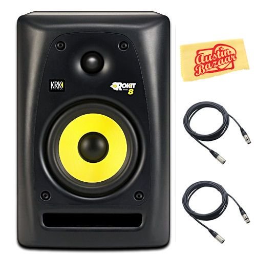 Bundle includes KRK Rokit 8 Studio Monitor Speaker, Two 10-Foot XLR Cables and Polishing Cloth.